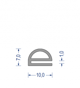 SILIKON-Hohlkammer-Klemmprofil, ca. 60 ±5° Shore A, 10 x 7 mm, Klemmbereich 1 mm, grau