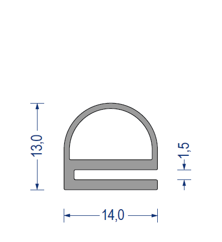 silikon hohlkammer-klemmprofil, silikon hohlkammer-profil, 55° shore a, 14x13mm, klemmbereich 1,5mm, grau, artikelnummer 2740013