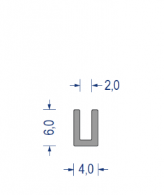 silikon u-profil, 60° shore a, klemmbereich 2mm, 4x6mm, grau, artikelnummer 2750003