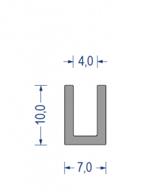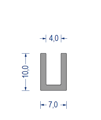 silikon u-profil, 60° shore a, klemmbereich 4mm, 7x10mm, grau, artikelnummer 2750006
