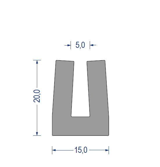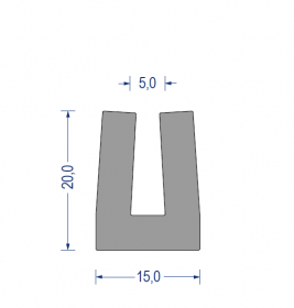 silikon u-profil, 50° shore a, klemmbereich 5mm, 15x20mm, grau, artikelnummer 2750012