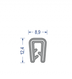 silikon kantenschutzprofil, klemmbereich 1-3mm, grau, 12,4x8,9mm, mit eingebettetem metallklemmdraht, artikelnummer 2770007