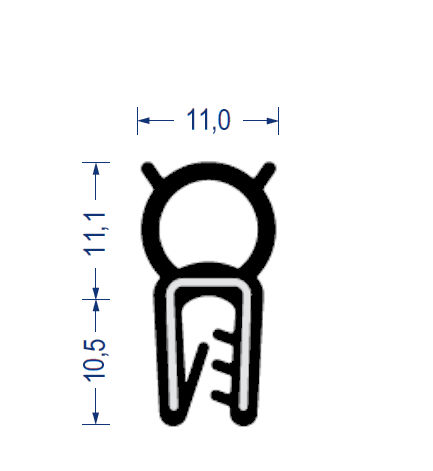 silikon kantenschutz-profil, mit dichtprofil oben, klemmbereich 1,5-3mm, schwarz, 21,6x11mm, mit eingebettetem metallklemmdraht, artikelnummer 2770015