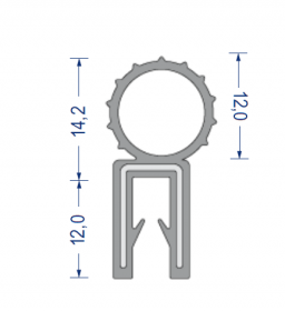 silikon kantenschutz-profil, mit dichtprofil oben, klemmbereich 1,5-3mm, grau, 26,2x12mm, mit eingebettetem metallklemmdraht, artikelnummer 2770017