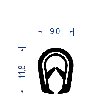 weich-pvc kantenschutz-profil, klemmbereich 1-3mm, schwarz, 11,8x9,0mm, mit eingebettetem metallklemmband, artikelnummer 2800007