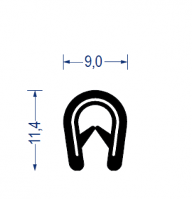 weich-pvc kantenschutzprofil, klemmbereich 2-4mm, schwarz, 11,4x9,0mm, mit eingebettetem metallklemmband, artikelnummer 2800008