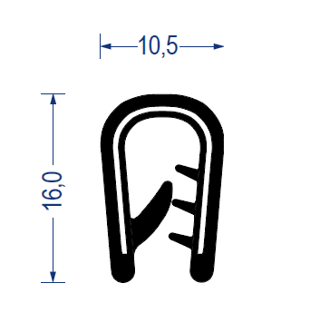 weich-pvc kantenschutzprofil, klemmbereich 2-4mm, schwarz, 16,0x10,5mm, mit eingebettetem metallklemmband, artikelnummer 2800018