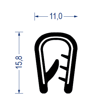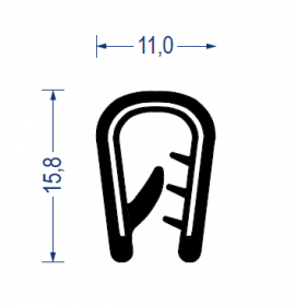 weich-pvc kantenschutz-profil, klemmbereich 4-6mm, schwarz, 15,8x11,0mm, mit eingebettetem metallklemmband, artikelnummer 2800019
