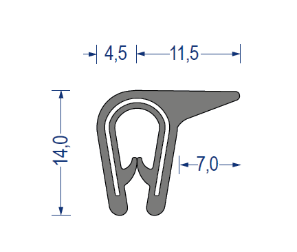 weich-pvc kantenschutzprofil, mit dichtlippe seitlich, klemmbereich 1-3mm, anthrazit, 14x16mm, mit eingebettetem metallklemmband, artikelnummer 2800027