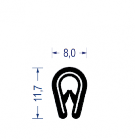 weich-pvc kantenschutzprofil, klemmbereich 1-2,5mm, schwarz, 11,7x8mm, mit eingebettetem metallklemmband, artikelnummer 2800031