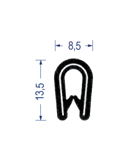 epdm gummi kantenschutzprofil, klemmbereich 1-2,5mm, schwarz, 13,5x8,5mm, mit eingebettetem metallklemmband, artikelnummer 2800032