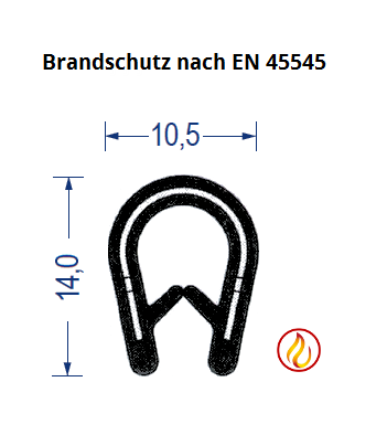 epdm gummi kantenschutzprofil, brandschutzqualität nach en 45545, klemmbereich 2-4mm, schwarz, 14x10,5mm, mit eingebettetem metallklemmband, artikelnummer 2800033