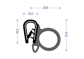 weich-pvc kantenschutzprofil, mit epdm-moosgummi dichtprofil seitlich, klemmbereich 1-2,5mm, schwarz, 16,2x20,6mm, mit eingebettetem metallklemmband, artikelnummer 2810007