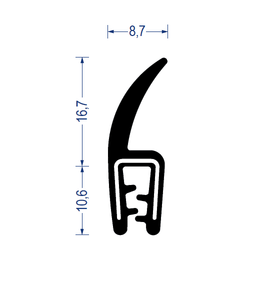 Kantenschutz - Profile aus EPDM-Gummi Flexible Kantenschutz-Dicht-Profile mit eingebettetem Stahlklemmband oder -draht und angeformter Dichtlippe oder Dichtprofil zum Umkleiden von Kanten, selbstständig klemmend, gut witterungs- und alterungsbeständig, temperaturbeständig von -30° bis 70° C, Toleranzen Gummi nach DIN ISO 3302-1 E3