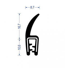 epdm gummi kantenschutzprofil, mit epdm-vollgummi-dichtlippe oben, klemmbereich 1-3mm, schwarz, 27,3x8,7mm, mit eingebettetem stahlklemmband, artikelnummer 2820003