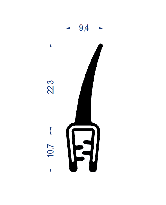 Kantenschutz - Profile aus EPDM-Gummi Flexible Kantenschutz-Dicht-Profile mit eingebettetem Stahlklemmband oder -draht und angeformter Dichtlippe oder Dichtprofil zum Umkleiden von Kanten, selbstständig klemmend, gut witterungs- und alterungsbeständig, temperaturbeständig von -30° bis 70° C, Toleranzen Gummi nach DIN ISO 3302-1 E3