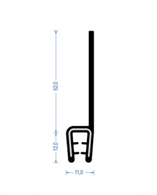 EPDM Kantenschutz-Profil mit EPDM-Dichtlippe oben, KB 3 - 4 mm, schwarz (64x10 mm) mit eingebettetem Stahlklemmband