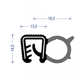 epdm gummi kantenschutzprofil, mit epdm-moosgummi dichtprofil seitlich, klemmbereich 2-4mm, schwarz, 14,5x19mm, mit eingebettetem metallklemmband, artikelnummer 2830013