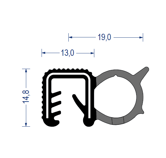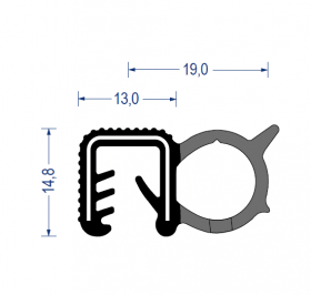epdm gummi kantenschutz-profil, mit epdm-moosgummi dichtprofil seitlich, klemmbereich 4-6mm, schwarz, 14,8x19mm, mit eingebettetem metallklemmband, artikelnummer 2830014