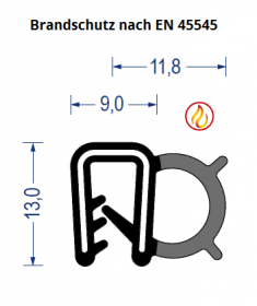 EPDM Kantenschutz-Profil mit EPDM-Moosgummi Dichtprofil seitlich, KB 2 mm, schwarz (13x11,8 mm) mit eingebettetem Metallklemmband, Brandschutzqualität nach EN 45545