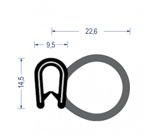 epdm gummi kantenschutzprofil, mit epdm-moosgummi dichtprofil seitlich, klemmbereich 1,5-3mm, schwarz, 14,5x22,6mm, mit eingebettetem metallklemmband, artikelnummer 2830042