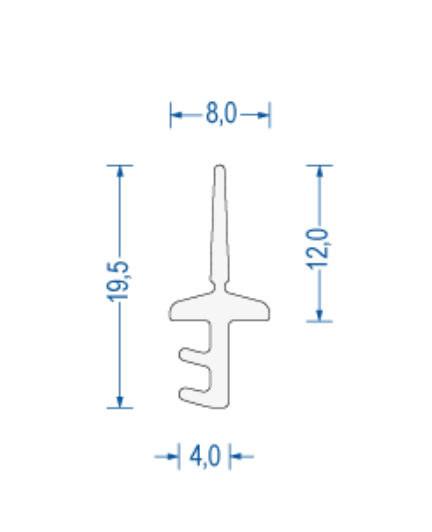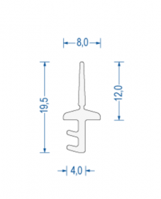 silikon fugensteckprofil mit dichtlippe oben, 50° shore a, transluzent, fugen-klemmbereich 4mm, 19,5x8mm