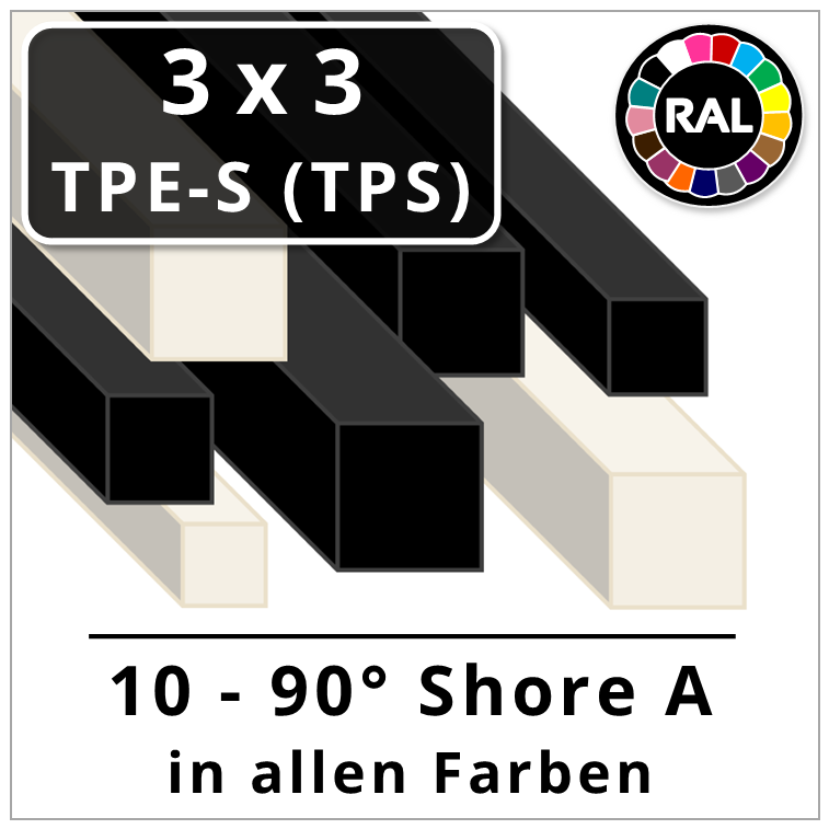TPE-S Quadratschnur-Profil • TPS Gummi Quadratschnur 3x3 mm
