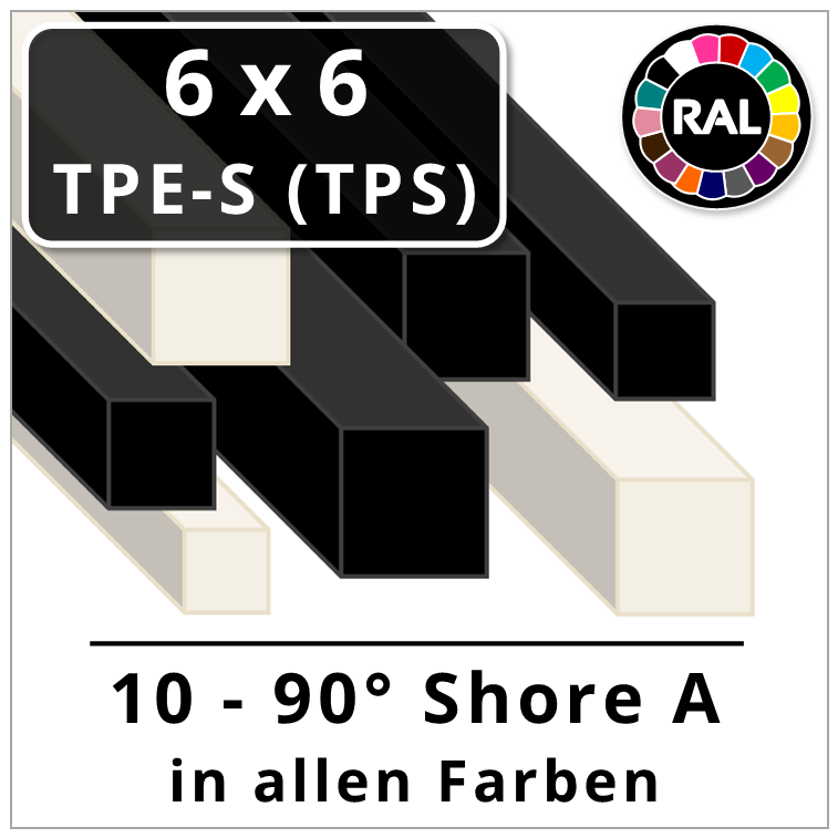 TPE-S Quadratschnur-Profil • TPS Gummi Quadratschnur 6x6 mm