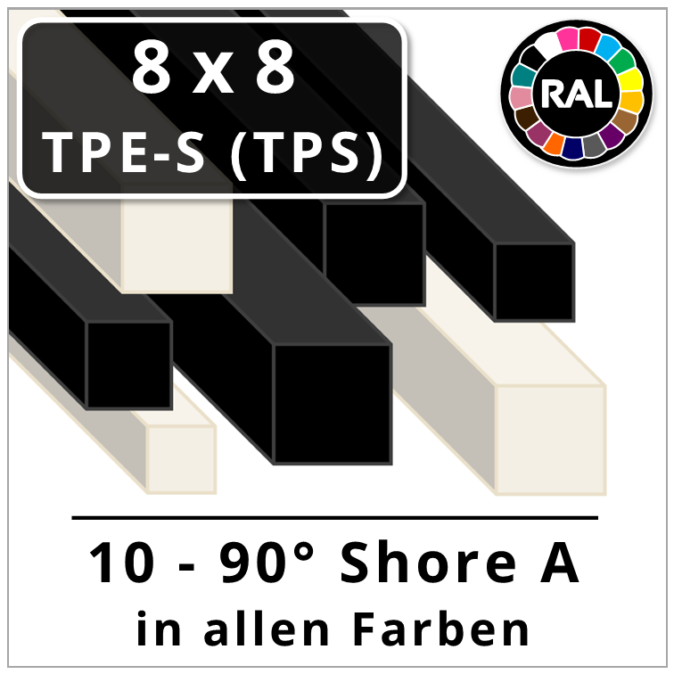 TPE-S Quadratschnur-Profil • TPS Gummi Quadratschnur 8x8 mm